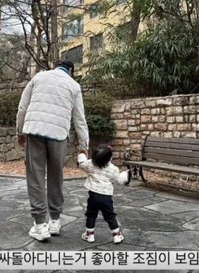 공개된 사진에는 이병헌이 생후 14개월 된 딸 서이 양의 손을 잡고 야외에서 함께 걷는 모습이 담겨 있다. 아장아장 걷고 있는 서이 양의 뒷모습은 보는 이들에게 따뜻한 미소를 안겼다.