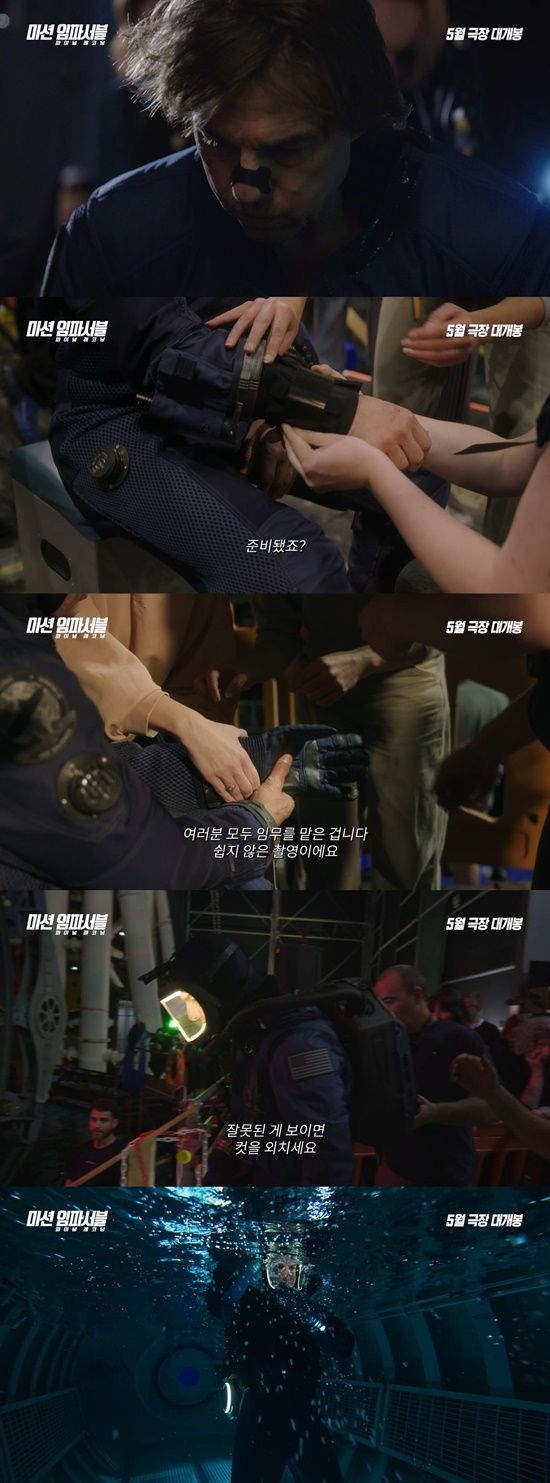 이어 마침내 머리 위로 물이 차오르고 잠수정이 열리며 본격적인 수중 촬영에 돌입하는 톰 크루즈의 모습으로 마무리되는 이번 영상은 흥분과 떨림을 동시에 전한다.