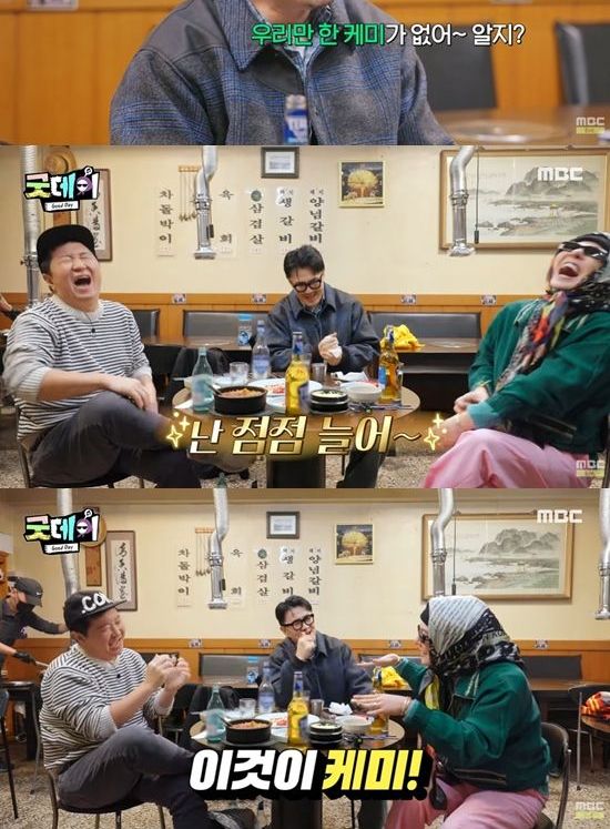 군대에 있을 당시 전화를 했던 일화까지 언급하면서 두 사람의 티키타카 케미가 발동됐는데, 데프콘이 등장하면서 정형돈의 위상에 변화가 있음이 드러났다. '굿데이' 섭외 시점에 엄청난 차이가 있던 것. 데프콘이 이를 해명하면서 "그래도 우리만한 케미가 없어"라고 하며 민망해했는데, 지드래곤은 "이런 게 그리웠던 것 같다"고 언급했다.