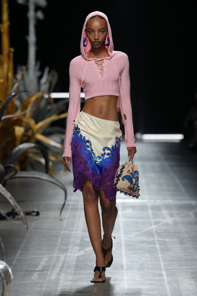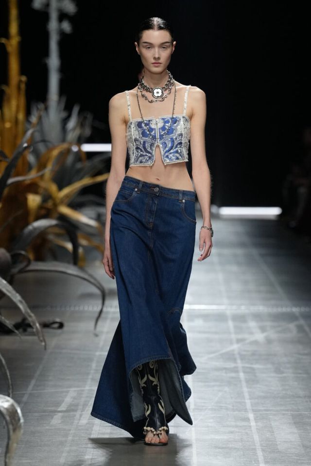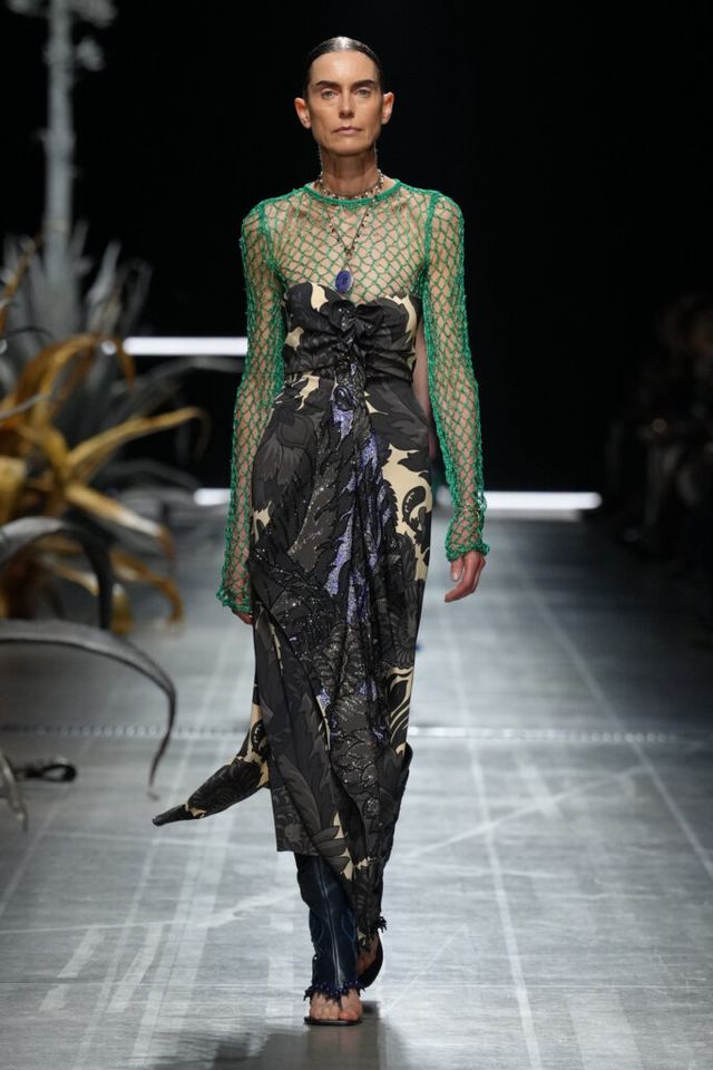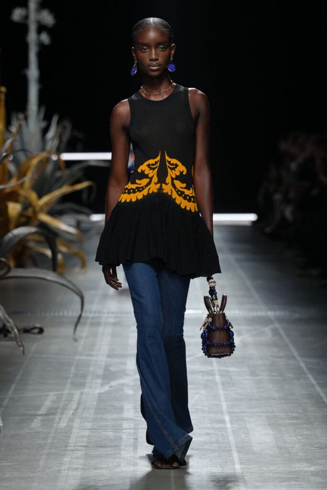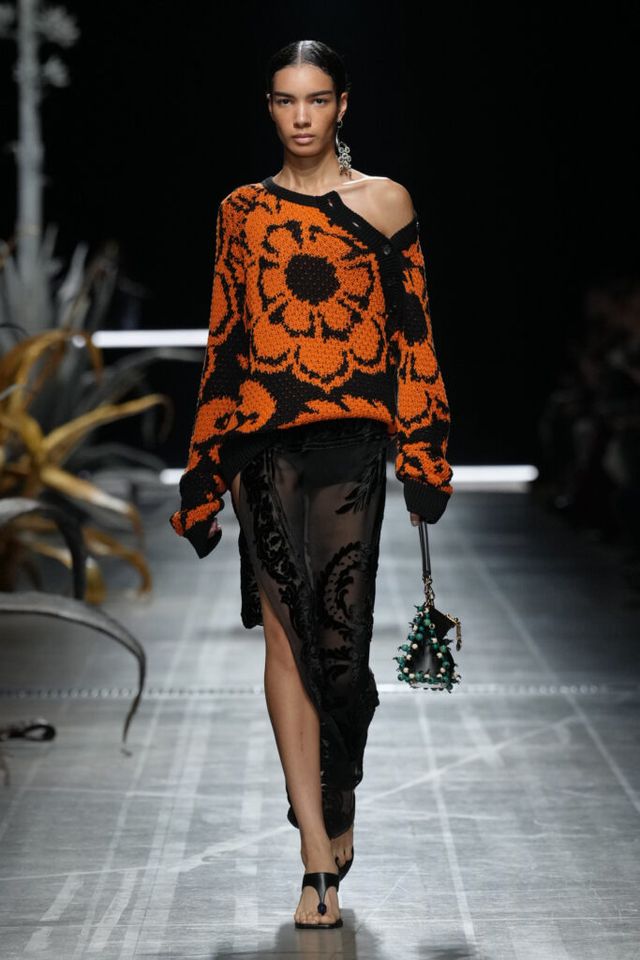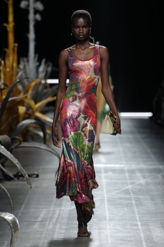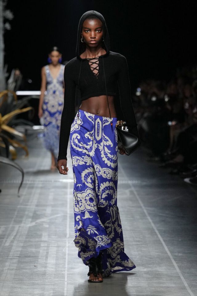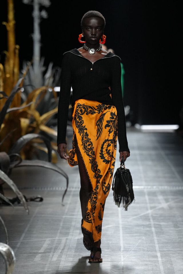 NOTE 마르코 드 빈센조는 여행의 본질이 목적지에 다다르는 것이 아니라 여정 자체에 있다는 사실에 집중했다. 그리고 아가베가 꽃을 피우는 과정을 다양한 프린트로 옷에 녹여냄으로써 그 진리를 시각화했다. 쇼에는 휴양지를 위한 리조트풍 드레스부터 데님 팬츠, 블레이저, 캐주얼한 스커트와 니트웨어까지 다양한 아이템이 등장했고, 그림체가 서로 다른 각양각색의 플로럴 패턴이나 페이즐리 패턴이 모습을 드러내 보는 즐거움을 더했다.