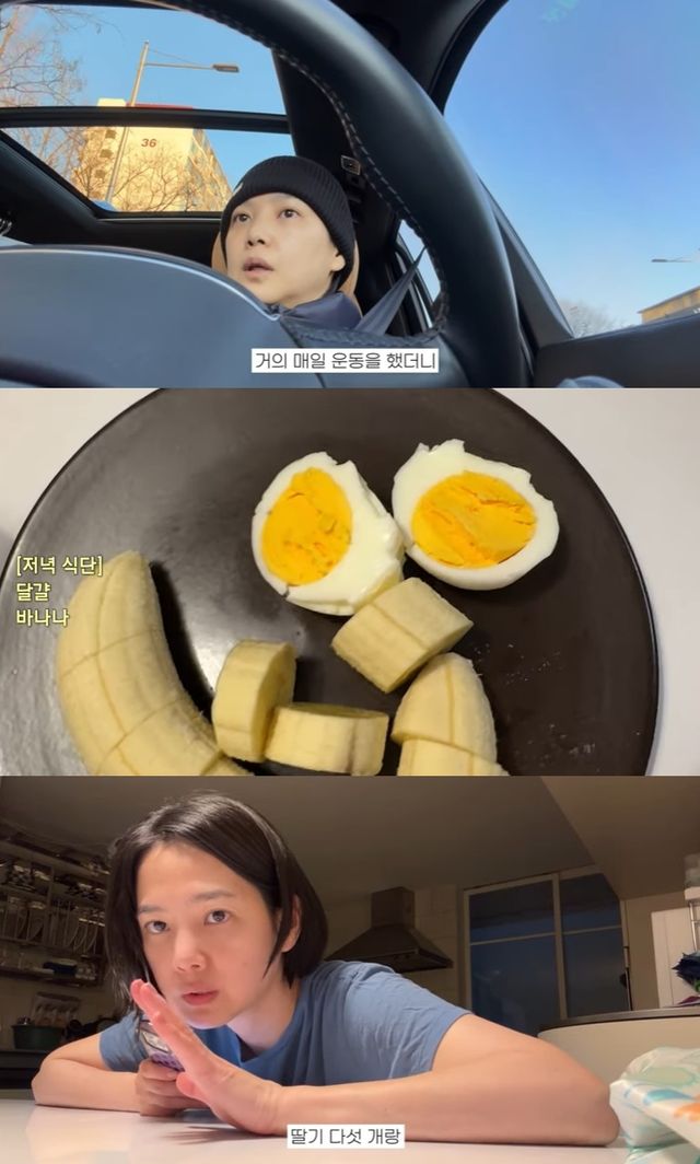 윤승아는 "명절에는 정말 신나게 먹었고, 저녁도 먹었는데 오늘부터 이제 저녁을 간단하게 먹으려 한다. 오빠랑 운동도 하루 했다"고 전했다.