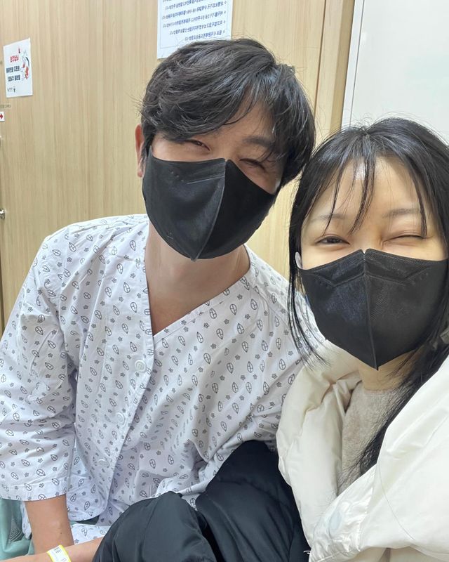 사진 속 유상무는 병원에서 검사를 받고 있다. 아내 김연지와 다정한 모습을 보여주기도 했다.