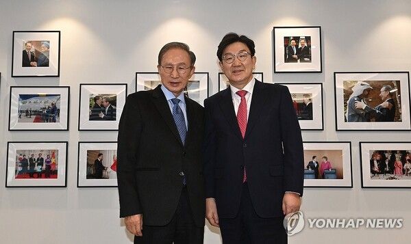 [폴리뉴스 김승훈 기자] 이명박 전 대통령이 17일 권성동 국민의힘 원내대표를 만나 "소수 정당이 똘똘 뭉쳐 (윤석열) 대통령이 일할 수 있도록 밀어줘야 하는데, (당이) 분열이 돼 있어서 참 안타깝더라"며 '단합'과 '통합'을 강조했다. 정치권에서는 MB가 당의 핵심인 '친윤계'의 손을 들어준 것이라는 분석이 나온다.