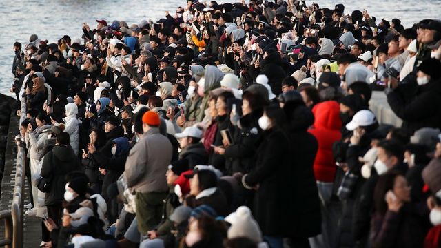 2025년 을사년(乙巳年) 새해 첫날 부산 해운대해수욕장에서 시민들이 새해 첫 해돋이를 기다리고 있다. / 뉴스1