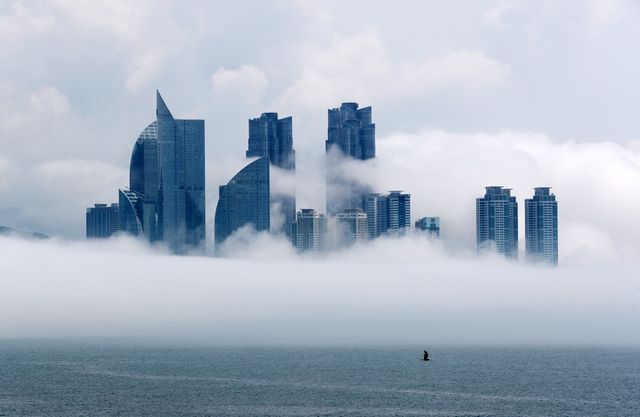 해무에 뒤덮인 부산 마린시티 / 뉴스1