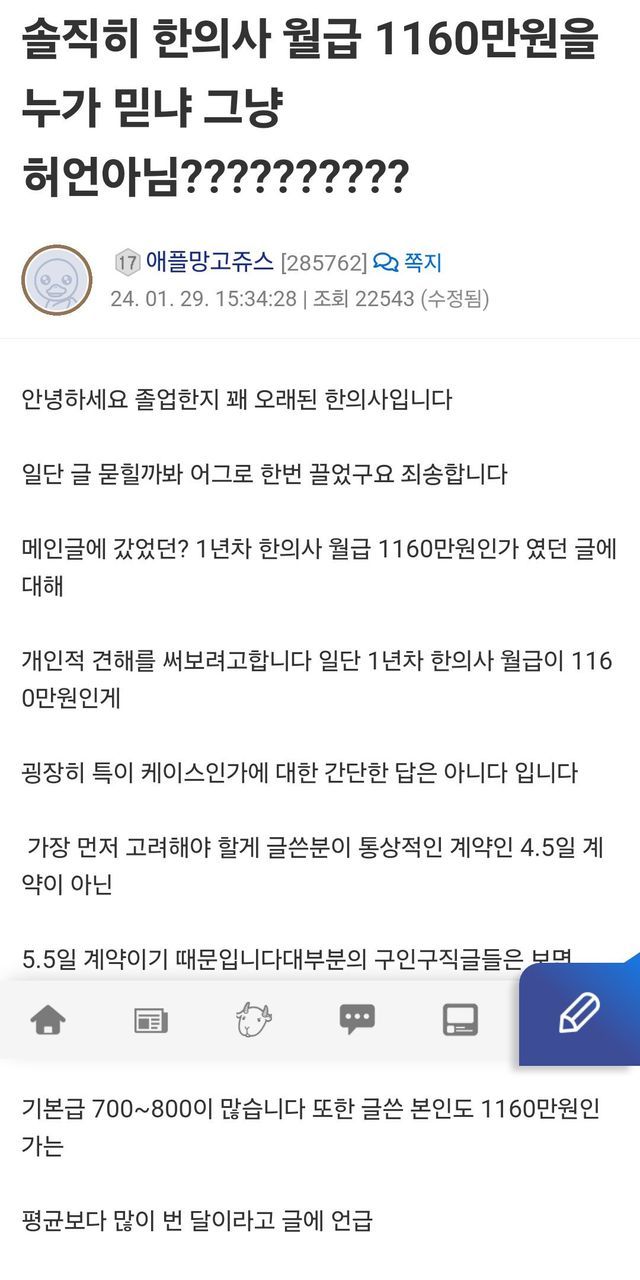 기본급(세후 750만원) + 인센(150만원)으로 5.5일 근무 한의사의 평균 급여는 약 세후 900만 원.