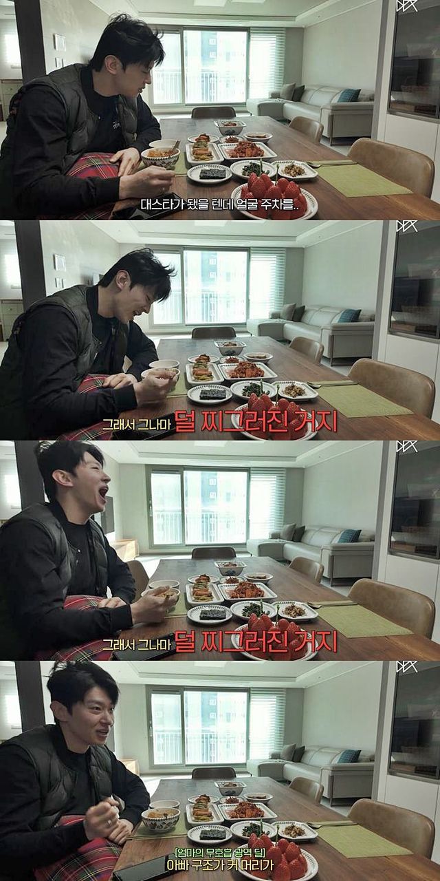 이날 덱스는 설 연휴를 맞아 고향 순천으로 내려갔다. 그는 어머님 표 밥상에 감탄했다. 또 “날씨가 춥다”면서 어리광을 피우기도 했다. 이에 덱스 엄마는 “체지방이 빠졌나 보다. 춥다고 하는 거 보니까”라며 아들을 쌀들이 챙겼다.
