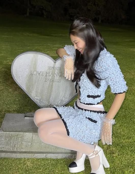 제니는 16일 오후 자신의 인스타그램에 신곡 '러브 행오버' 뮤직비디오 촬영 현장 사진을 여러 장 게재했다.