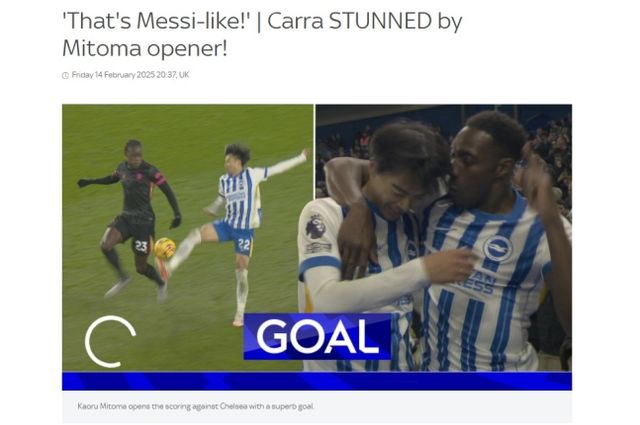 '스카이스포츠' 소속 해설자 제이미 캐러거는 "미토마의 첼시전 선취골은 내가 본 득점 중 최고의 골 중 하나다"라고 극찬했다.