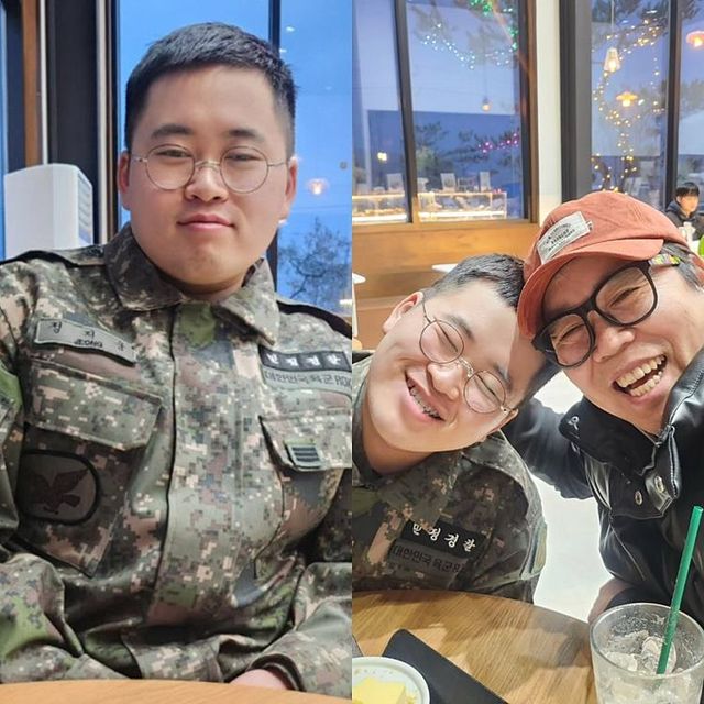 정은표는 17일 자신의 인스타그램에 “1박 2일 짧은 휴가를 나온 지웅이”라는 글과 함께 사진을 게재했다.