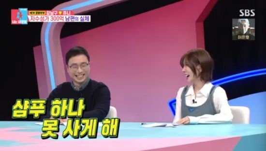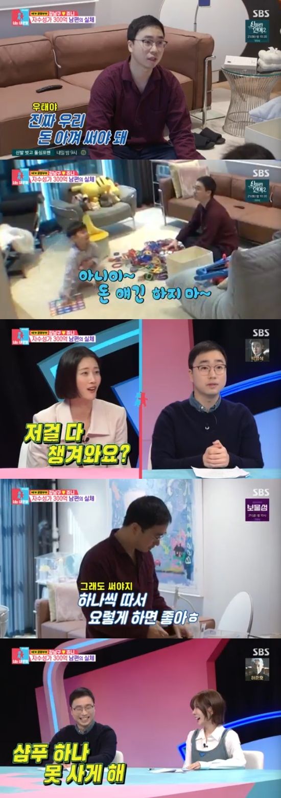 또 아내는 늘 최저가만 고집하는 강남구에게 "비싼게 다 좋은 건 아니겠지만, 어느 정도의 값은 줘야 퀄리티가 나온다. 휴지도 1겹따리 최저가를 사니까 닦을 때 힘들다"고 토로했다.