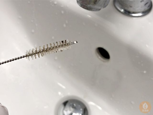 캡을 뺀 뒤 세척솔을 밀어넣어서 닦으면