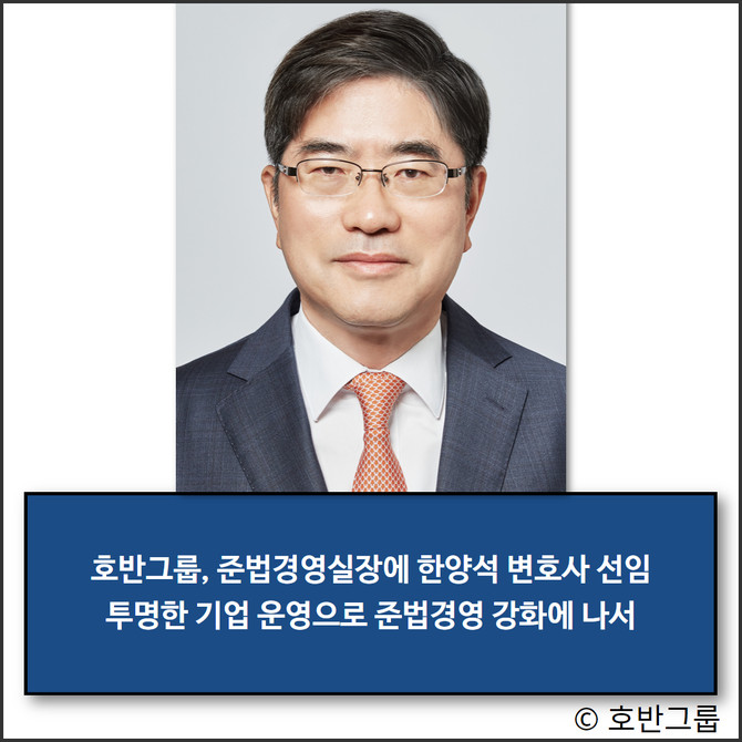 호반그룹이 준법경영 체제를 강화하기 위해 준법경영실장에 한양석 변호사를 선임했다.