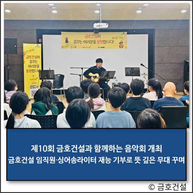 이번 음악회는 금호건설이 주최하고, 사단법인 더불어배움이 함께 준비한 공연으로, 문화 활동을 접할 기회가 적은 아동·청소년들에게 특별한 경험을 선사했다. 음악회에는 누리사랑지역아동센터 소속 초등학생과 중학생 40여명이 초대돼 약 한 시간 동안 다채로운 공연을 관람했다.