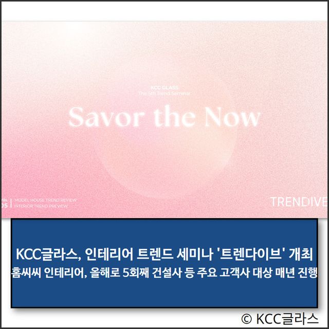 KCC글라스(344820)의 인테리어 전문 브랜드 '홈씨씨 인테리어'가 인테리어 트렌드 세미나 '2025/26 트렌다이브(TRENDIVE)'를 개최했다.