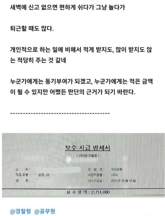 순경 3호봉 실수령