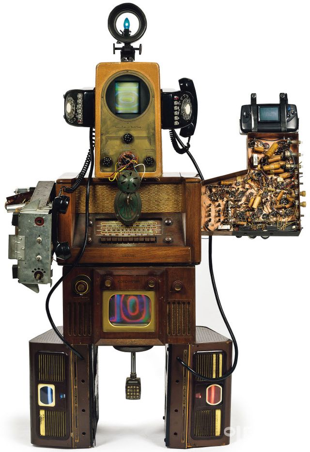 현대미술 부문에선 백남준(1932∼2006)의 작품이 눈에 띈다. 인공지능(AI) 시대가 열리며 ‘먼저 미래로 떠난 이’로 다시 주목받는 백남준의 작품 중에서 고전적인 로봇 ‘해커 뉴비’(Hacker Newbie 1994)가 나섰다. 1970년대 ‘전자초고속도로’ 개념을 꺼낸 뒤 일찍이 로봇가족 연작을 제작해온 백남준은 ‘해커 뉴비’에 미래의 인간상을 심었다. 시대를 대표해온 매체인 TV·라디오·전화기 등으로 온몸을 구성한 키 155.5㎝의 로봇이 마치 2025년을 향해 인사를 건네는 듯 한 손을 들어 올렸다. 추정가 1억 3000만∼2억 5000만원을 달고 새 주인을 찾는다.