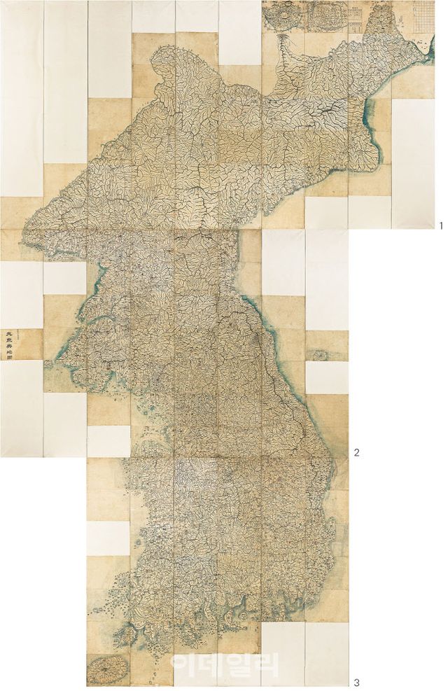 서울옥션이 올해 첫 메이저 경매 리스트에 ‘대동여지도’(1861)를 올렸다. 한반도의 북부지방을 10개의 패널(395×209㎝)로, 중부지방을 8개의 패널(315.8×209㎝)로, 남부지방을 6개의 패널(236.3×209㎝)로 나눈 3점의 병풍 형태로 출품했다. 셋을 펼쳐 연결하면 전국도가 만들어진다. 추정가는 3억 2000만∼10억원이다.