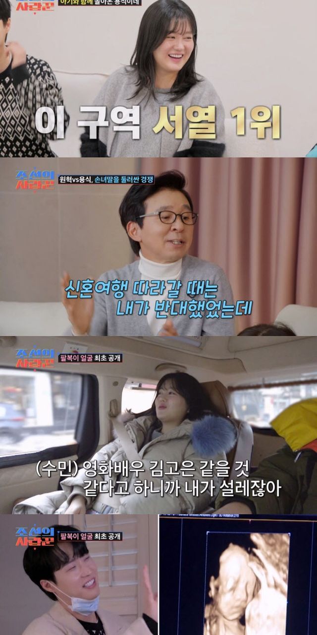 최신 유행 아기용품으로 육아를 전담할 생각에 행복해하는 이용식을 보며 김국진은 “이용식 선배님은 산부인과 가는 거 인정해 주자. 신혼여행 따라갈 때는 내가 반대했었는데, 나는 이해해 주고 싶다”며 열변을 토했다. 이후 첫 입체 초음파를 위해 산부인과로 향하는 차 안에서 이수민은 “친구들이 오빠 얼굴을 예쁘게 닮으면 영화배우 김고은 씨 닮을 것 같다고 해서 설렌다”라며 들뜬 마음을 감추지 못했다. 입체 초음파를 받으며 팔복이의 실물을 확인하게 된 원혁은 “아무리 봐도 코가 할아버지 코다”라고 농담을 건넸다. 손녀의 코가 자신의 코와 비슷하다고 하자 내심 자랑스러워한 이용식은 “팔복이 태어나면 코를 계속 만져줘라”라며 조심스럽게 조언을 건네 폭소를 유발했다.
