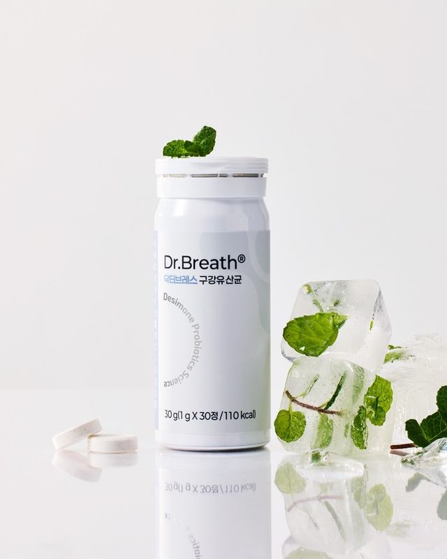 닥터브레스 구강유산균은 상쾌한 애플민트 맛으로 남녀노소 누구나 섭취하기 편한 츄어블 정제로 만들었다. 입 안이 텁텁할 때나 양치 후 입 안에서 천천히 녹여 먹는 것을 추천한다. 유산균 전용 특수 용기를 사용해 습기, 빛 등으로부터 안전하게 보관할 수 있다.