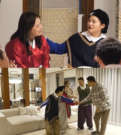 모두가 모이자, 상다리가 휘어지는 밥상이 차려진다. 김원효가 공수한 싱싱한 해산물부터 소유진표 갈비찜과 잡채, 김기욱과 김신영이 사온 대방어회, 과메기 등이 식탁을 가득 채워 군침을 자아내는 것. 식사를 하던 중 김원효는 갑자기 “신영이랑 기욱이는 우리 아버님(장인)을 봤나? 어떻게 생기셨는지 진짜 궁금하다”고 말한다.