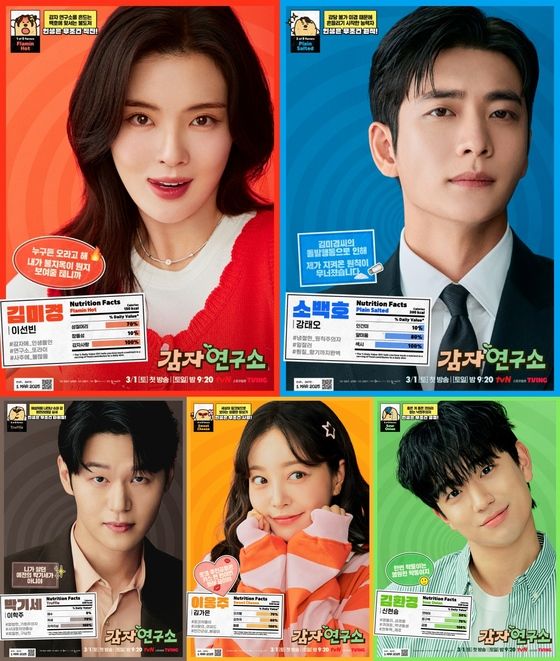 오는3월1일(토)첫 방송되는tvN새 토일드라마‘감자연구소’(연출 강일수·심재현,극본 김호수,기획CJ ENM스튜디오스,제작(주)초록뱀미디어)측은18일 김미경(이선빈 분),소백호(강태오 분),박기세(이학주 분),이옹주(김가은 분),김환경(신현승 분)의5인5색 캐릭터 포스터를 공개했다.