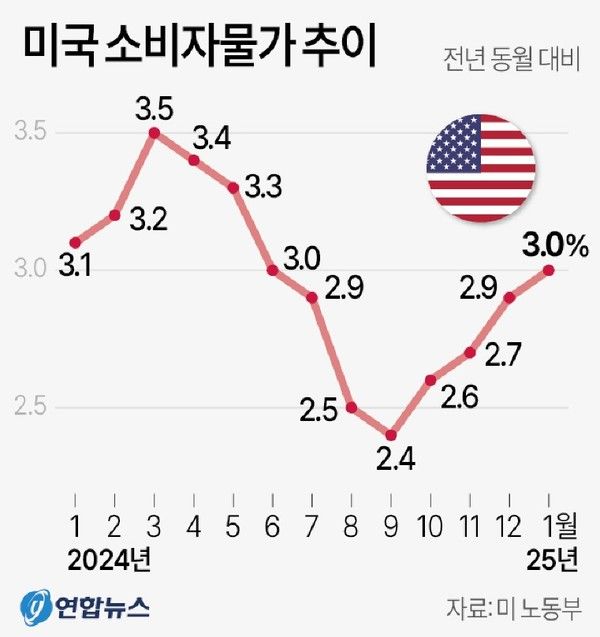 지난 12일(현지시간) 미국 노동부는 1월 소비자물가지수(CPI)가 전년 동월 대비 3.0% 상승했다고 발표했다.