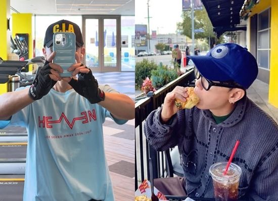 공개된 사진 속 이승환은 'CIA'라고 적힌 모자를 쓰고 헬스장에서 운동을 하거나 여유롭게 햄버거를 먹고 있어 눈길을 끈다. 미국에서의 일상을 강조하는 모습이다.