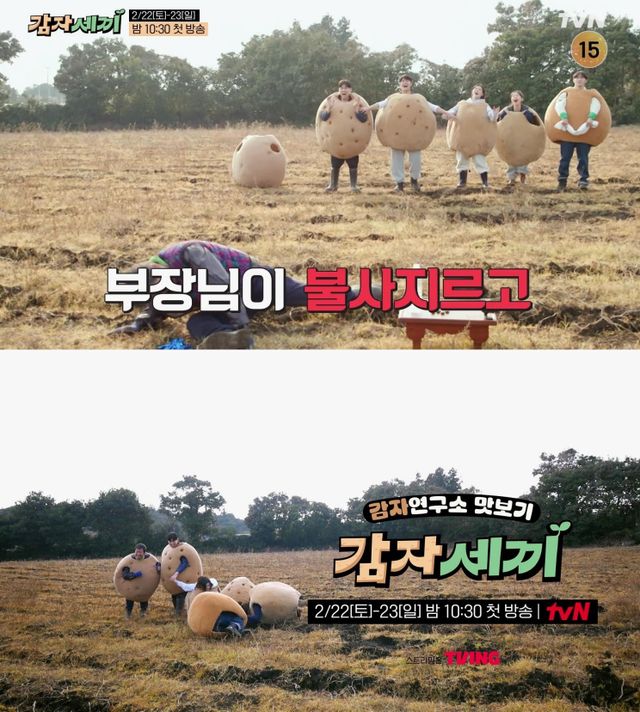 특히 온몸 내던진 제기차기 투혼부터 "감자꽃이 피었습니다" 게임까지, 웃음 포텐 터지는 현장은 '감자연구소' 맛보기 스페셜 예능 '감자세끼'에 대한 기대를 증폭시킨다.