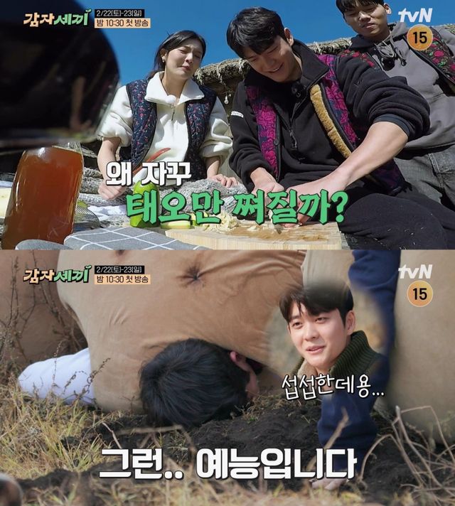 감자 요리에 열중하는 강태오 옆에서 잔소리 폭격을 쏟아내는 이선빈. 감자가 아닌 강태오만 쪄지는 모습이 웃음을 더한다.