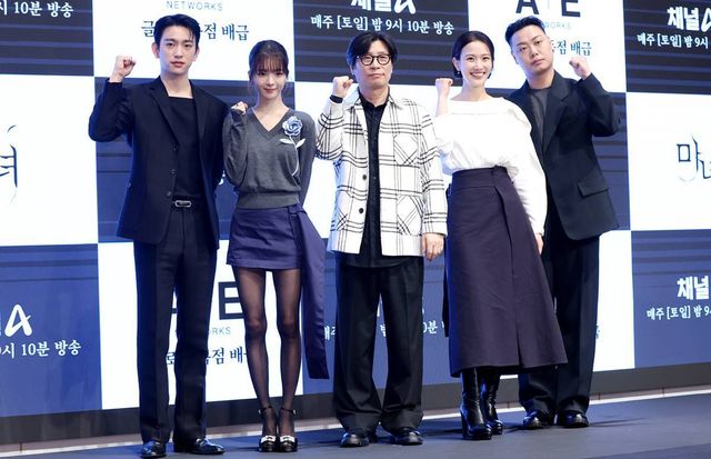 배우 박진영(왼쪽부터)과 노정의, 김태균 감독, 장희령, 임재혁이 지난 11일 서울 구로구 더세인트에서 열린 채널A 새 토일드라마 '마녀' 제작발표회에서 포즈를 취하고 있다. '마녀'는 마녀라 불리는 여자를 둘러싼 불운의 법칙을 깨고자 하는 남자 ‘동진’(박진영)과 비극의 씨앗이 되어 세상으로부터 스스로를 단절한 여자 ‘미정’(노정의)이 포기하지 않는 여정 끝에 서로의 구원이 되는 미스터리 로맨스다 / 뉴스1