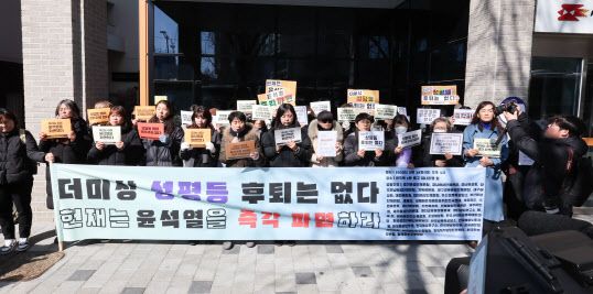 그러면서 “전쟁 위협을 상시화함으로써 여성을 비롯한 소수자들을 더욱 불안정한 상황에 내몰았다”며 “성평등 사회 실현을 요구하는 여성과 소수자들의 존재를 지우려 했던 윤석열 정권은 혐오와 차별, 폭력의 언어로 민주주의 체계를 부정하고 있다”고 목소리를 높였다. 이어 “여성 시민들은 절박하게 윤석열 탄핵을 촉구한다”며 “성평등한 사회가 민주주의 보루다”고 덧붙였다.