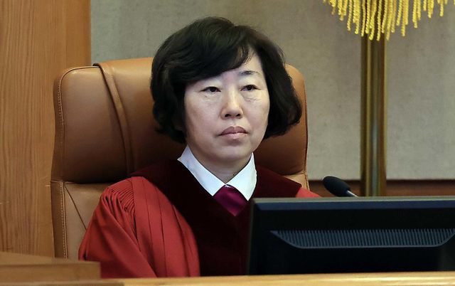 정계선 헌법재판관이 15일 오전 서울시 종로구 재동 헌법재판소 대심판정에서 열린 이진숙 방송통신위원장 탄핵심판청구 사건에 대한 3회 변론에 참석해 있다. / 뉴스1