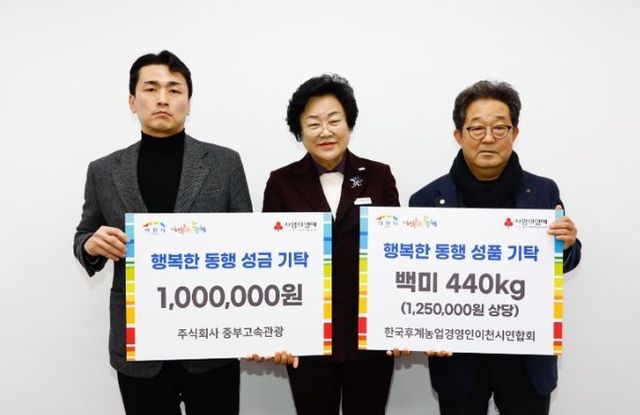 [와이뉴스] 이천시는 한국후계농업경영인 이천시연합회와 주식회사 중부고속관광이 어려운 이웃들을 위해 백미 440kg와 성금 100만 원을 기부했다고 밝혔다.