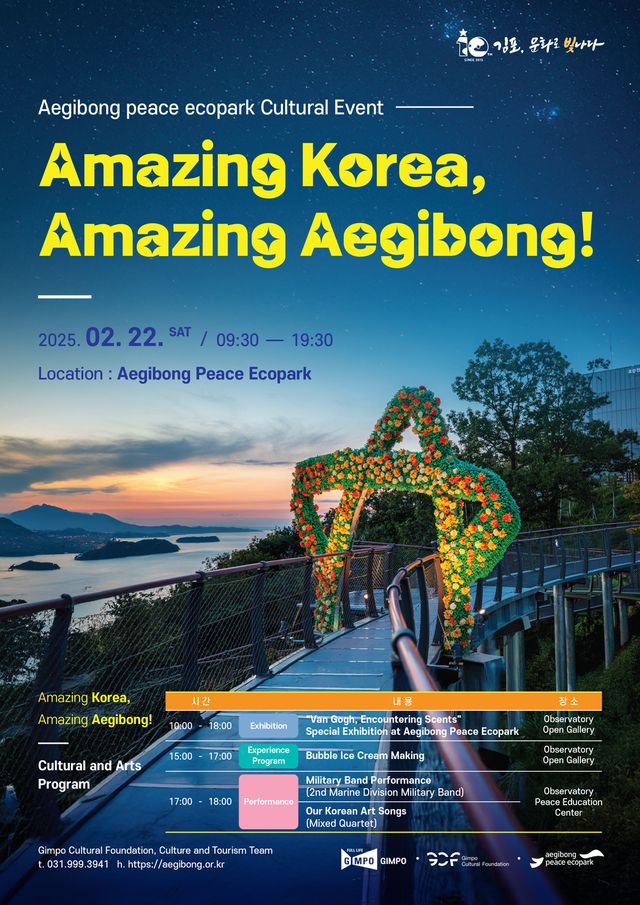 세계가 사랑하는 애기봉평화생태공원에서 오는 22일 최초로 해병대 군악대 특별 공연을 개최한다. 어메이징 코리아! 어메이징 애기봉!이라는 주제로 개최되는 이번 행사는 세계인에게 평화와 희망의 메시지를 전달하고 관광객들에게 특별한 추억을 안겨줄 것으로 기대된다.