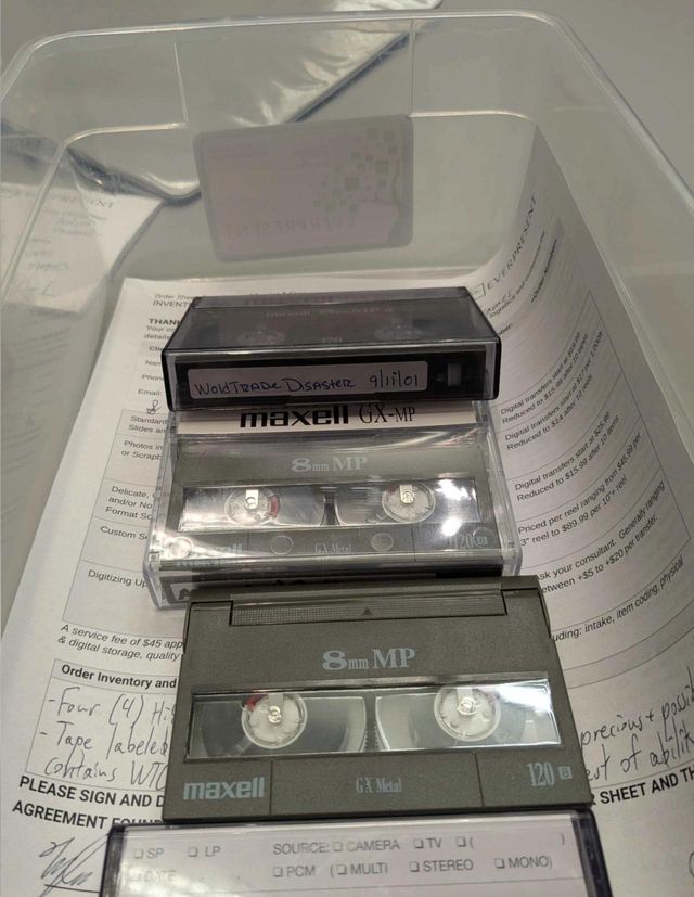 911 테러 생존자가 개인적으로 보관해온 물건으로, 절대 공개를 꺼렸으나 911 Media Preservation Group과 BetweenTwoTowers 라는 유저가 소유주에게 접촉하고, 물건을 넘겨받아 3~4 개의 8mm 비디오 테이프에 대한 디지털 복원 작업을 진행하고 있다는 소식을 올렸다.