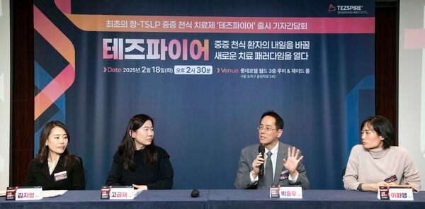 한국아스트라제네카 호흡기·면역 사업부 김지영 전무는 "테즈파이어는 중증 천식 치료의 새로운 지평을 여는 혁신적인 치료제"라며 "항-TSLP이라는 차별화된 기전을 통해 바이오마커나 천식 표현형의 틀에서 벗어나 보다 많은 중증 천식 환자들에게 새로운 치료 희망을 전할 수 있게 되어 매우 기쁘다"고 말했다. 이어 "앞으로도 한국아스트라제네카는 중증 천식 환자들의 치료 접근성을 높이고 삶의 질 개선에 기여할 수 있도록 국내 의료진 및 유관 기관들과 적극적으로 협력하며 중증 천식 치료의 새로운 미래를 만들어 나가겠다"고 밝혔다.