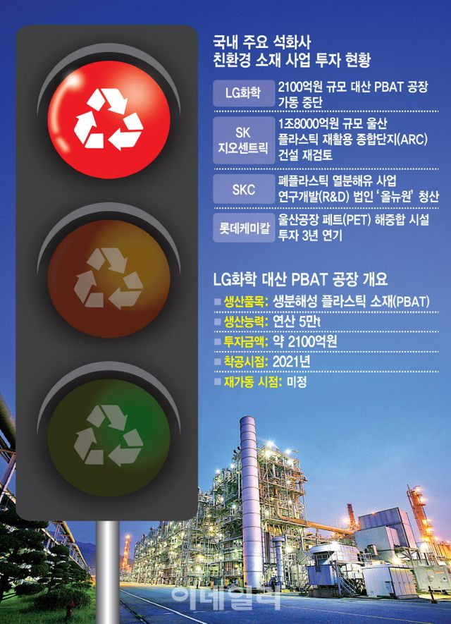 18일 업계에 따르면 LG화학(051910)이 충남 대산 생분해성 플라스틱 소재(PBAT) 공장 가동을 중단하고 양산 일정을 무기한 연기한 것은 중국발 공급과잉으로 주력사업인 범용 석유화학 제품 수익성이 크게 악화한 가운데 미래 사업인 친환경 소재 수익성마저 담보할 수 없는 상황에 놓여서다.