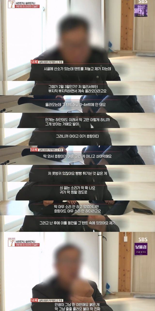 태백산맥에서 호랑이를 목격했고 증거로 발자국을 발견했다는 사람