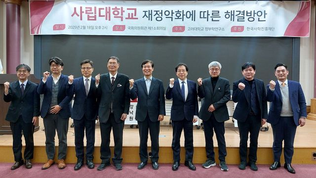 고려대 정부학연구소가 주최하고, 한국사학진흥재단이 후원하는 ‘사립대학교 재정악화에 따른 해결방안’ 주제 세미나가 18일 국회의원회관 제1소회의실에서 열었다. 고려대 정부학연구소는 ‘한국 사회의 국내외 변화와 도전에 행정 부문이 어떻게 적응할 것인가?’라는 문제의식을 토대로 사회집단 간 갈등을 조정하고 문제 해결을 위한 전략적 방법을 탐구하는 연구소다.