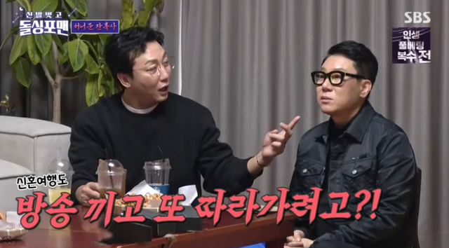 그러자 탁재훈은 “어차피 이혼은 우리말고도 모든 방송에서 다뤄”라고 말해 웃음을 자아냈다. 또 이상민이 김지민의 신혼여행지를 미국으로 추천하자 탁재훈은 “방송끼고 또 따라가려고?”라고 놀리면서도 “그럼 나도”라고 덧붙였다.
