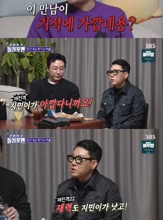 이어 성지인은 "그리고 초혼인 여자분이 9살이나 여리다. 그러면 남자분이 외모와 재력이 상당히 뛰어나야한다"라고 말을 이었고, 이를 들은 홍진호는 "그럼 두 분의 만남은 거의 기적과도 같은거네요"라고 시원하게 정리해 큰 웃음을 줬다.