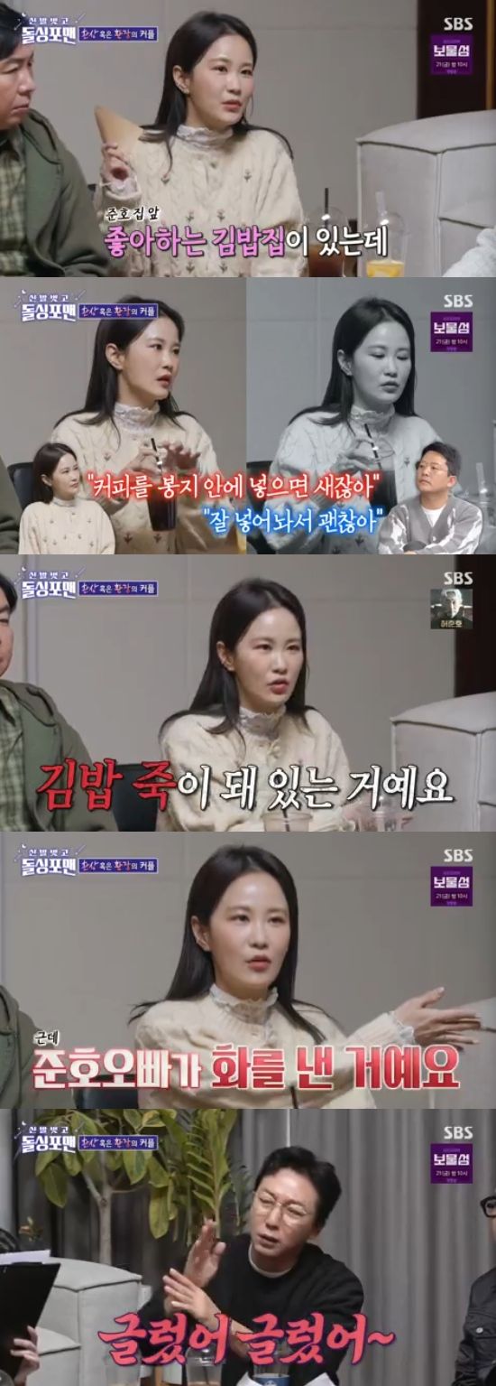 이어 "그리고 집에 와서 김밥을 봤더니 김밥죽이 되어있더라. 너무 화가나서 버럭 화를 내고 방으로 들어갔다. 그러니까 준호 오빠도 화를 내더라"고 말했다.