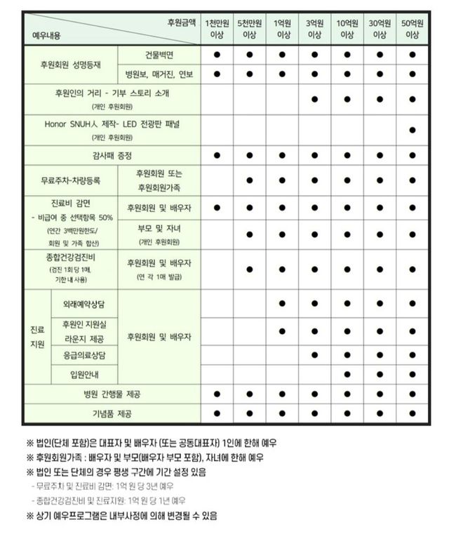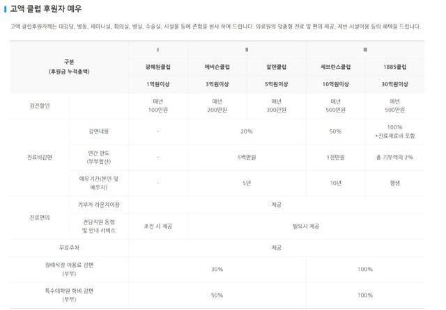세브란스도 1000만원 이상부터 의료 혜택인데 표에는 안나옴