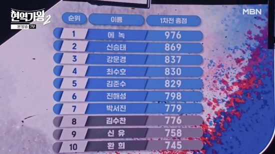 이로써 결승 1차전 순위는 1위 에녹, 2위 신승태, 3위 강문경, 4위 최수호, 5위 김준수, 6위 진해성, 7위 박서진까지 이름을 올렸다.