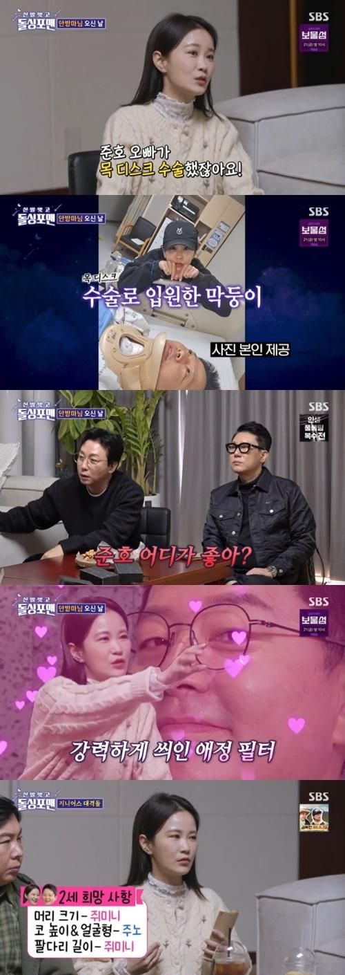 이날 '돌싱포맨' 멤버들이 "여기 준호 집 아니야? 준호 집을 네가 산 거야? 우리 일하러 왔는데"라며 의아해하자, 김지민은 "저도 일하러 왔다"라고 답했다. 그러면서 "준호 오빠가 목 디스크 수술하지 않았나? (녹화) 못 오면 자리가 위태로울까 봐 왔다. 공백 채워서 빈자리를 못 느끼게 할 것"이라고 털어놨다.