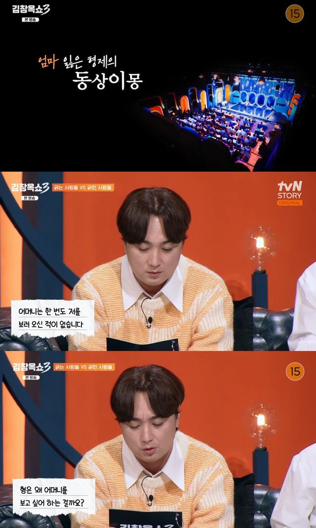 18일 tvN STORY '김창옥쇼 3'에서는 한 사연자가 이혼 후 자신을 찾지 않은 어머니를 찾는 것에 대해 형과 의견이 달라 갈등을 겪고 있다며 고민을 상담했다.