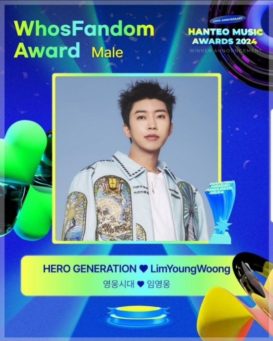 이번 시상식에서는 다양한 아티스트들이 수상의 기쁨을 누렸고, 그중 임영웅은 남자 부문 후즈팬덤상을 받았다.