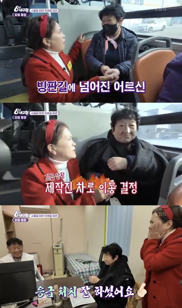 11일 방송된 KBS1 ‘6시 내고향’에서는 강원도 평창의 고향버스에 올라 이웃들의 인생사를 만나보는 ‘국민 안내양’ 김정연의 모습이 담겼다. 눈과 바람으로 얼어붙은 강원이지만 어느 때보다 따뜻한 이웃들의 마음을 함께 느끼던 순간 좌석에 앉아있던 한 어르신의 팔이 심하게 부은 것을 발견하고 서둘러 다가갔다.