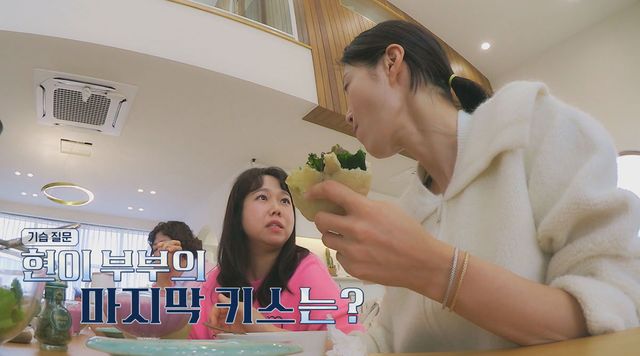 이어 ‘애라원’ 크루들이 직접 준비한 브런치를 먹으며 가까워진 출연진들은 여자들끼리 있을 때만 즐길 수 있는 화끈하고 허심탄회한 수다의 장이 열렸다. 홍현희가 뜬금없이 남편과의 마지막 키스는 언제였는지 질문하자 이현이는 마지막 키스가 일주일 전이라고 말해 놀라움과 부러움을 산다. 반면 이현이와 달리 신기루, 홍현희는 “결혼 후 키스 경험이 없다”며 고백해 웃음을 자아냈다.